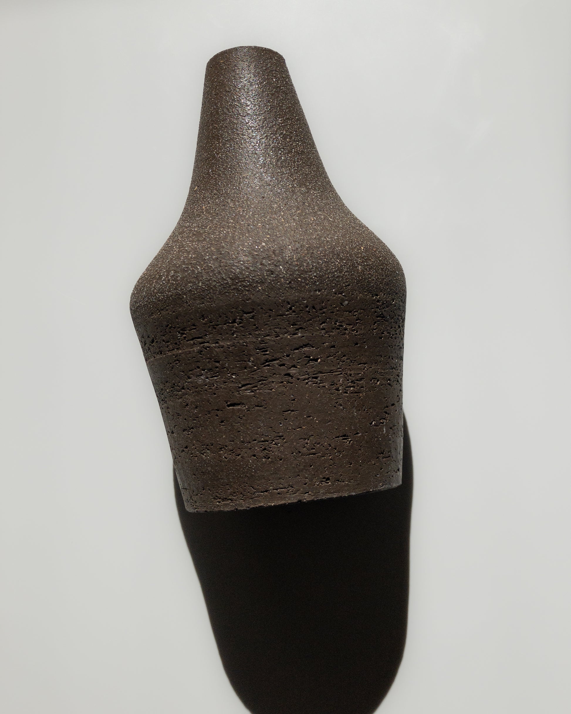 マットな質感に、胴部にかけてわずかに荒らされたテクスチャーが施されていて、表面は火山岩を思わせるような力強さがあります。それに対してシルエットは滑らかで引き締まった(関西弁ではシュッとした)造形。花を生けてもそのまま飾っても。