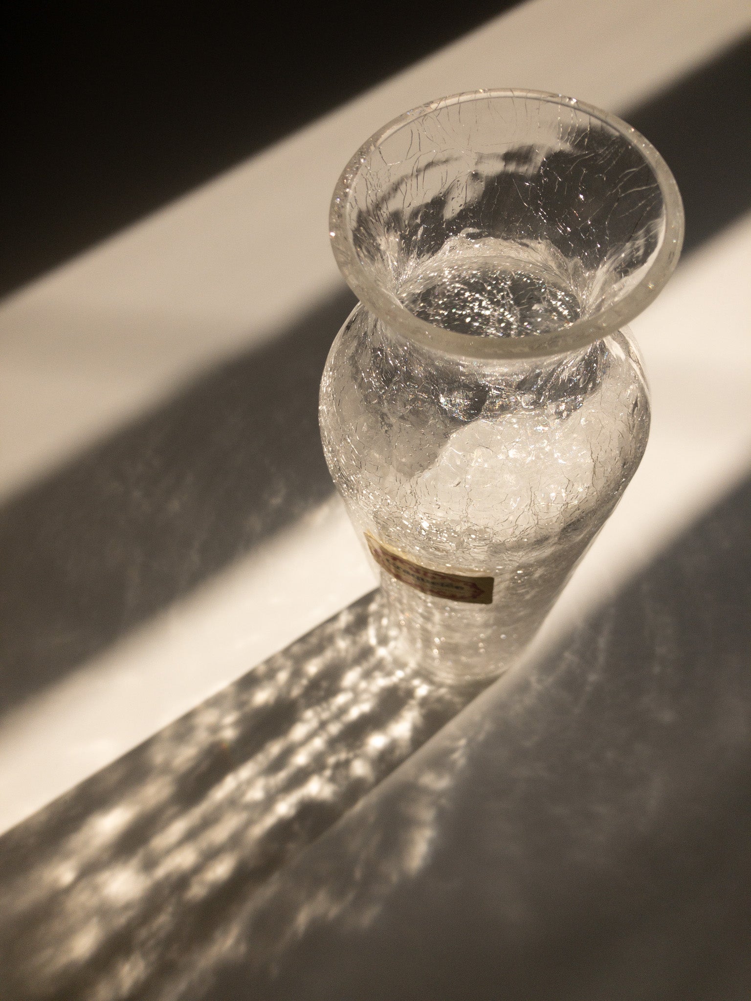 この花瓶も表面のヒビ模様が個性的で、光を受けるとまたおもしろい陰影が現れます。