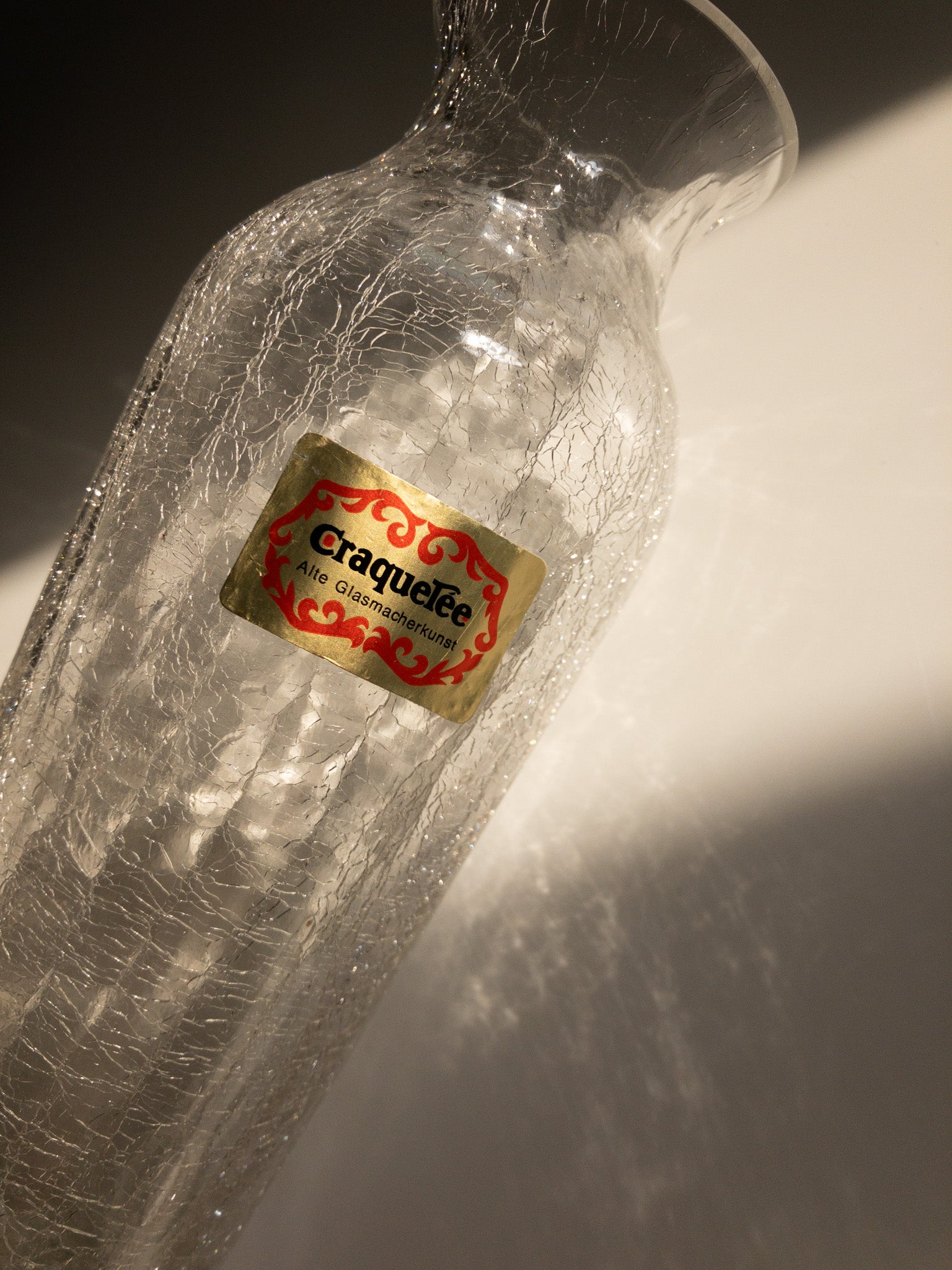 ドイツIngridglas(Ingrid Glashütte)製造、クラックガラス(Craquelee Glass)技法を用いた花瓶。1970年代頃の製品です。こんなにひび割れて、これって大丈夫?と思ってしまいますが、ただの模様なのでご安心を。