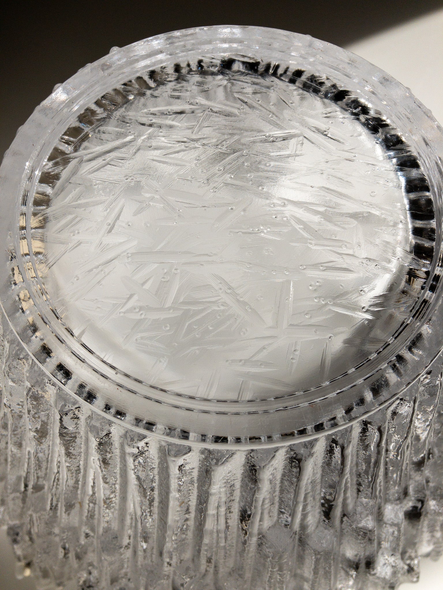 もともとはTauno Wirkkala(タウノ・ヴィルッカラ)によって1972年頃にデザインされ、フィンランドのHumppila(フンッピラ)社によって製造されていたのですが、後に、スウェーデンのBergdala(ベルグダーラ)社やHöganäs(ホガナス)社、Kullaglas(クッラグラス)社など、他のガラス工場でも同じデザインが生産されたようです。