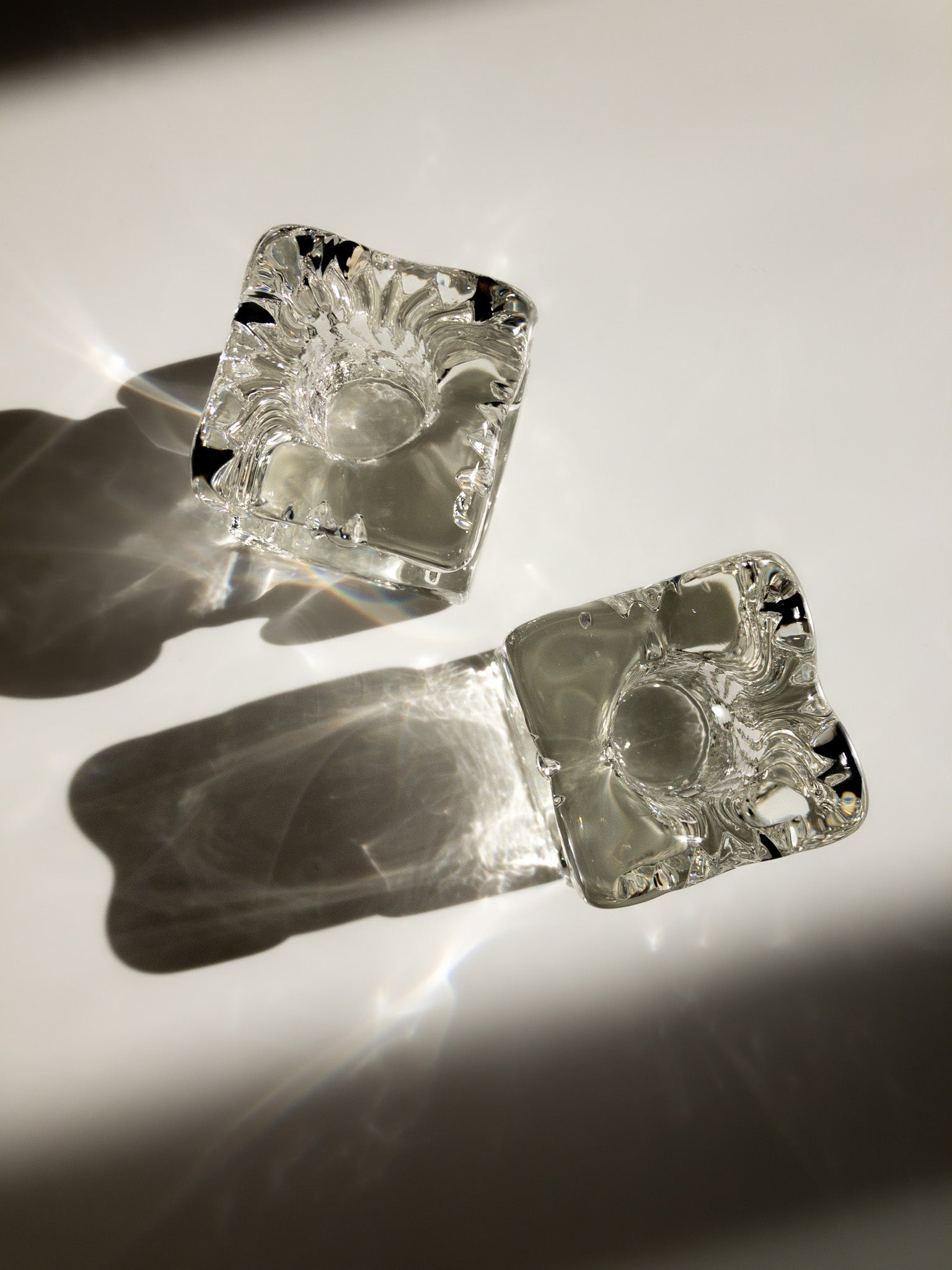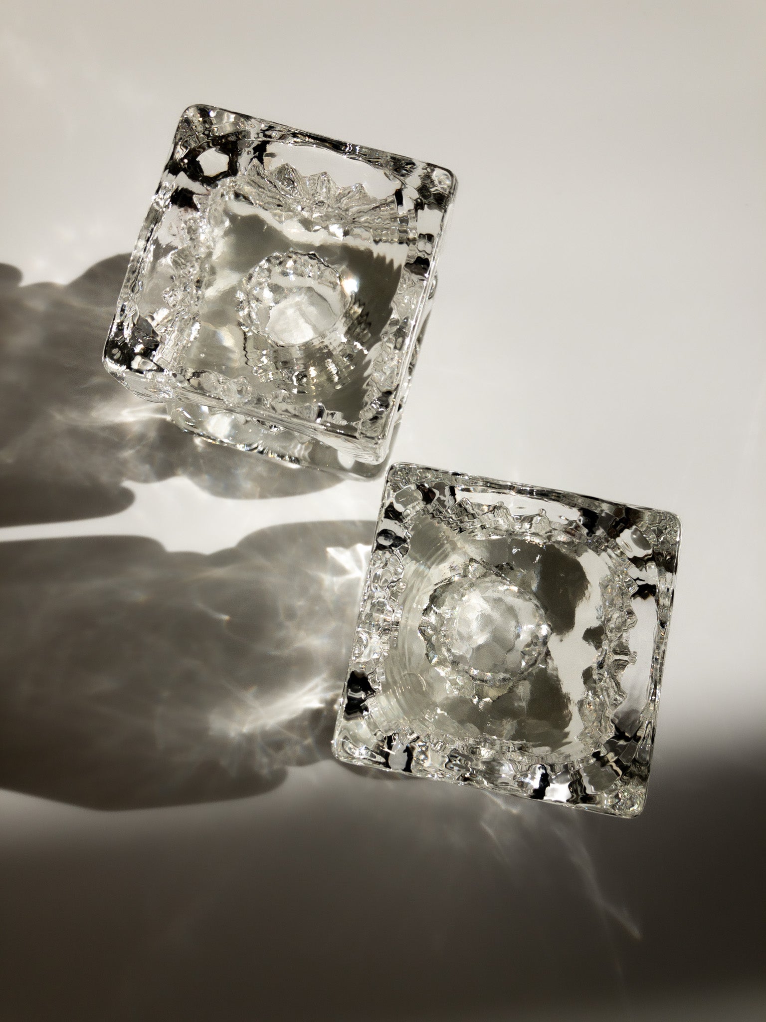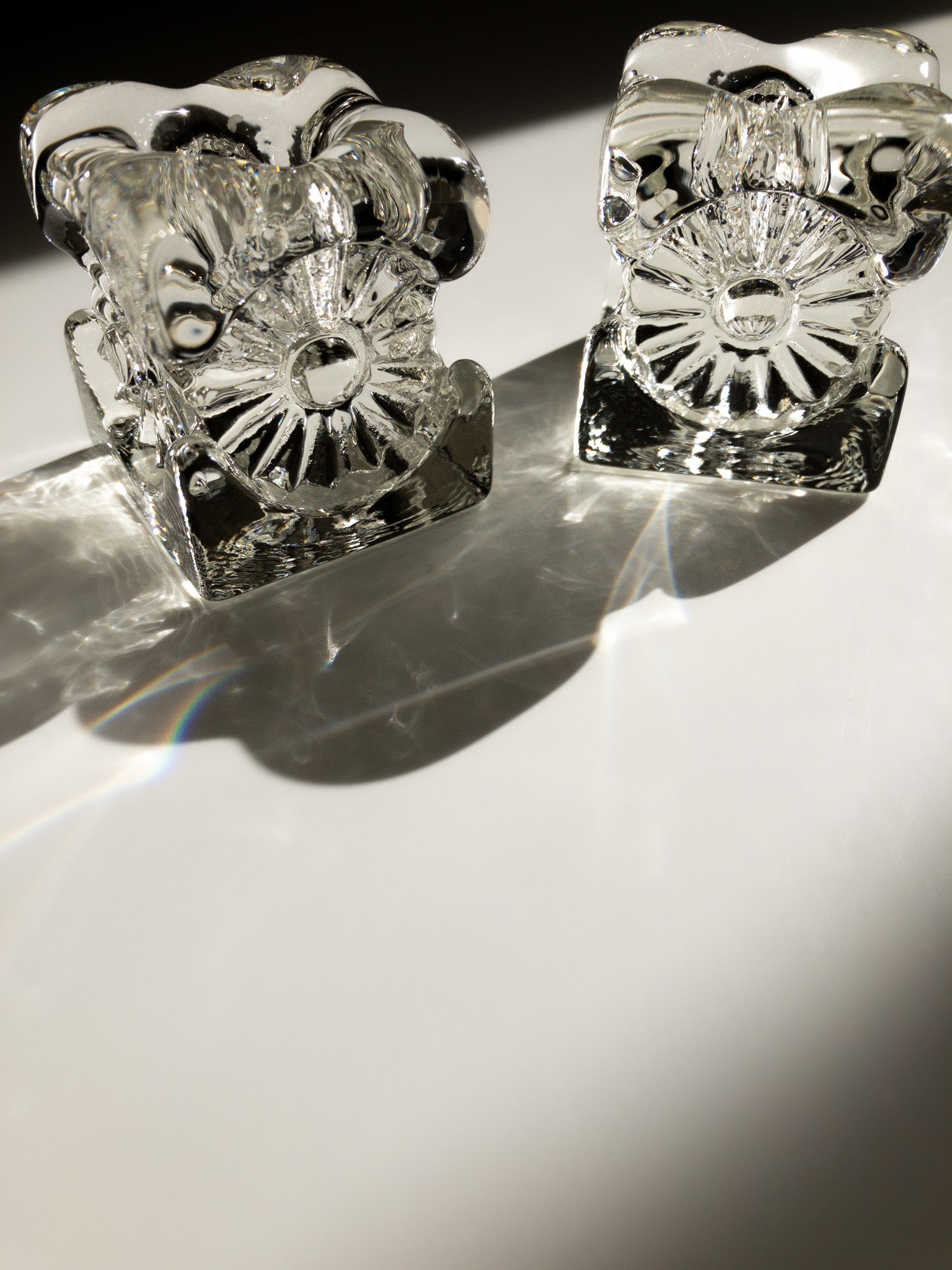 厚手のクリスタルガラスにデイジーのレリーフが施されており、繊細なデザインとしっかりとした作りが特徴。Daisyシリーズには異なる形状やサイズのバリエーションが存在し、キャンドルホルダーだけでなく花瓶などもあるようです。