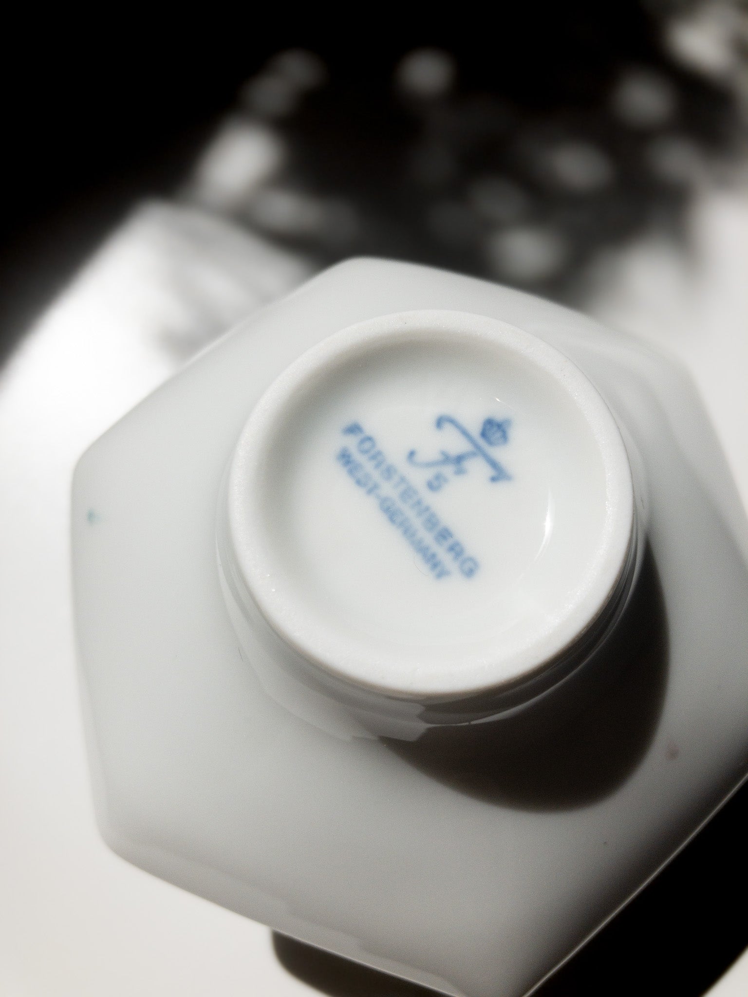 1960年代から70年代の間に製造されたFürstenbergの製品の底面には青い窯印が施されていて、こちらの製品にもロゴマークと「Fürstenberg West-Germany」と印されています。
