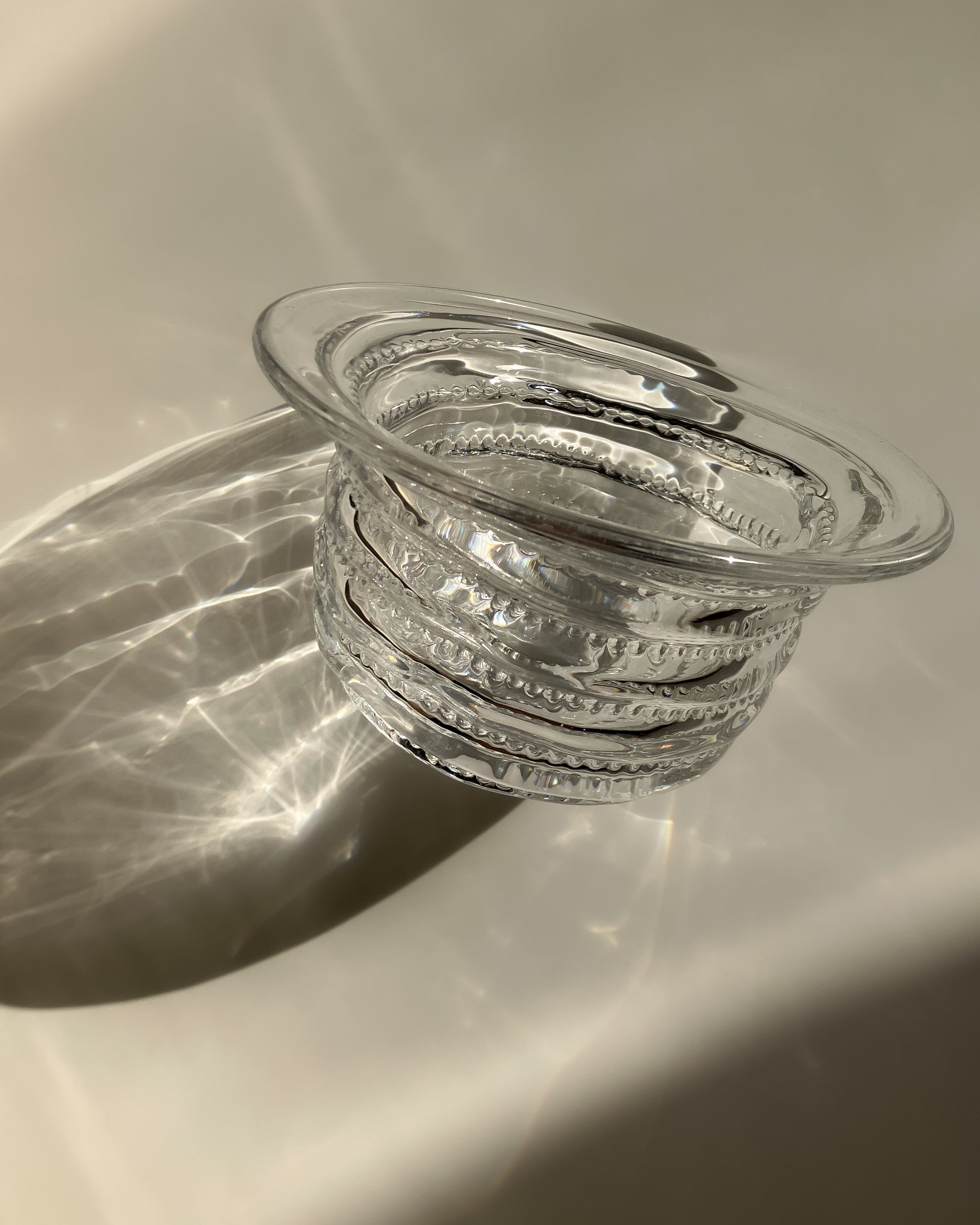 側面には、水面の波紋を思わせる横帯のレリーフが配されていて、過度な装飾を避けつつ、触感と視覚の両面に変化を与えてくれます。
