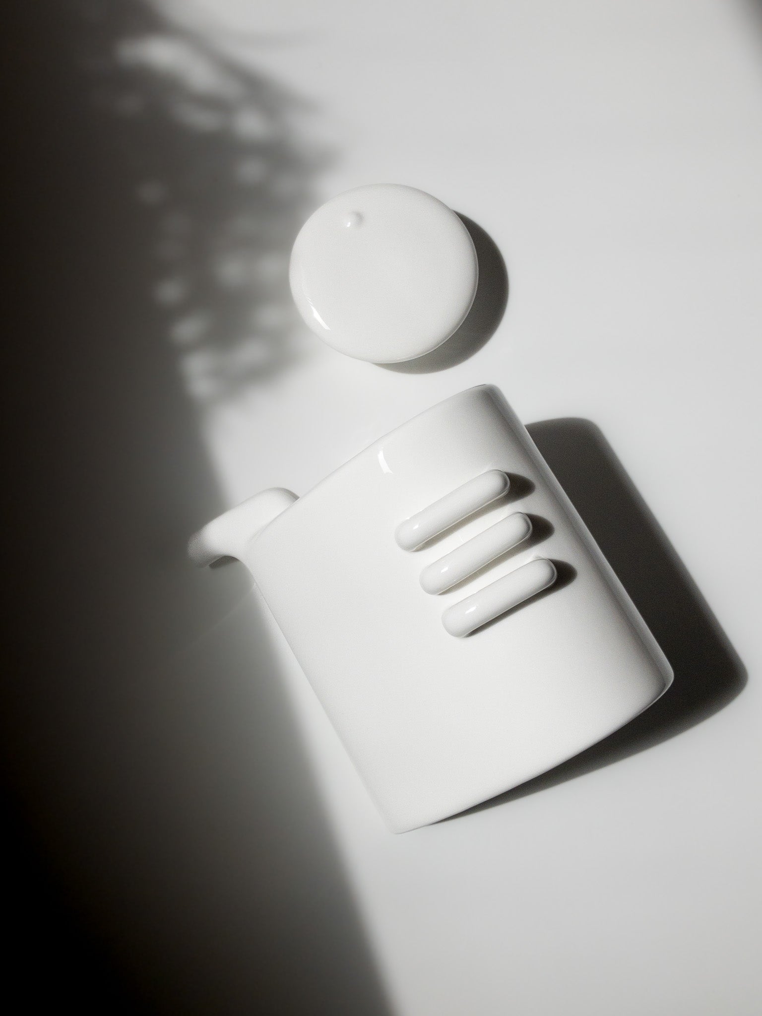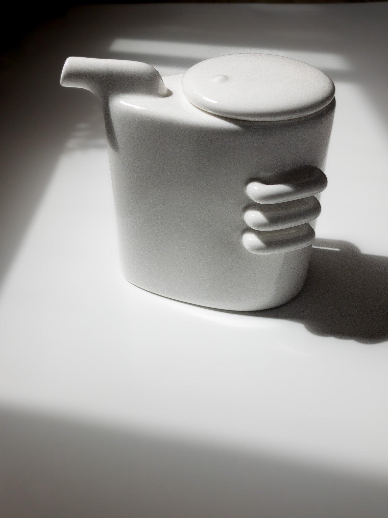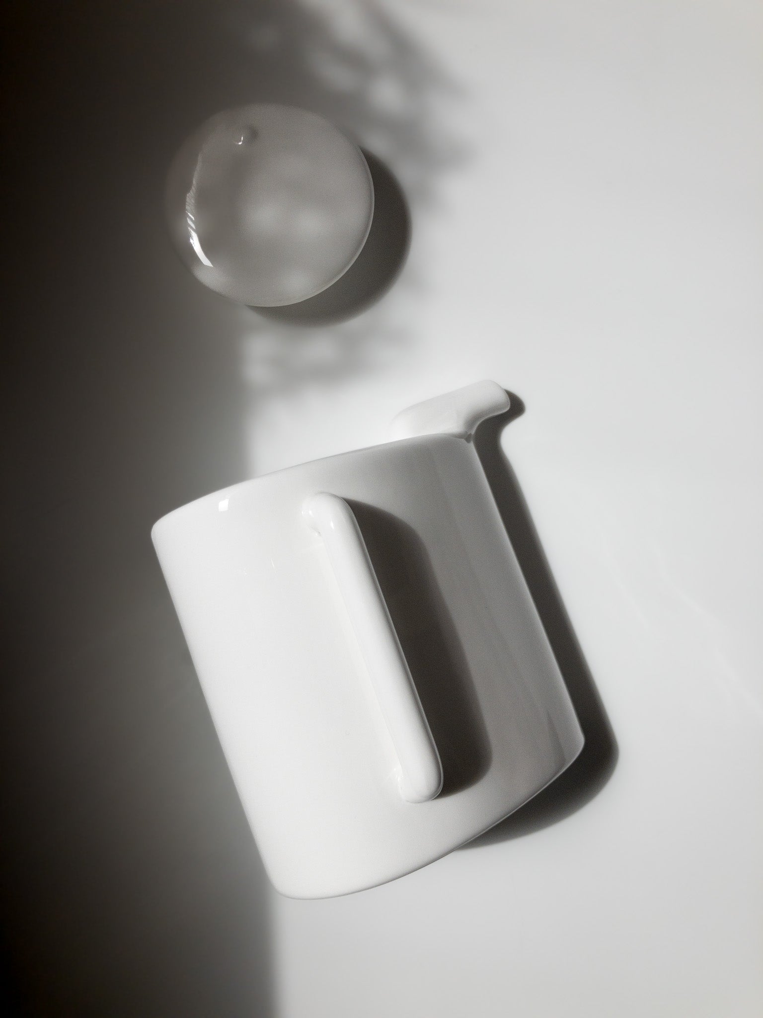 個性的な形状でモダンなデザインですが、高品質なボーンチャイナ(骨灰磁器)製というのもあり、純白の地肌が際立った清潔感のある仕上がり。