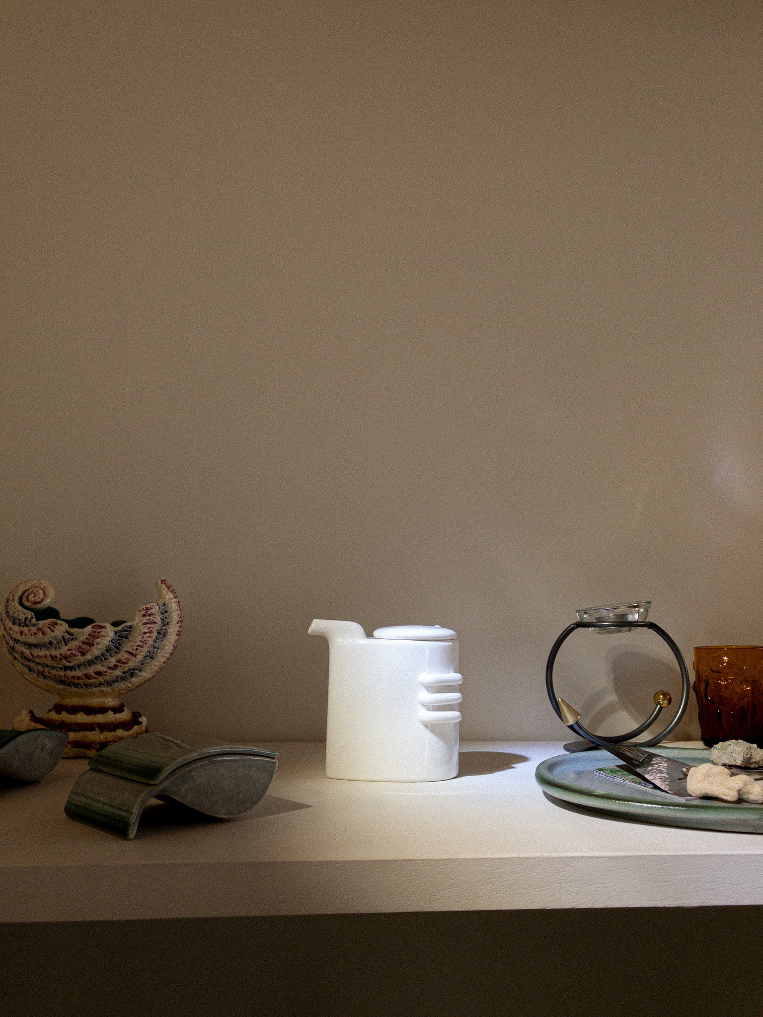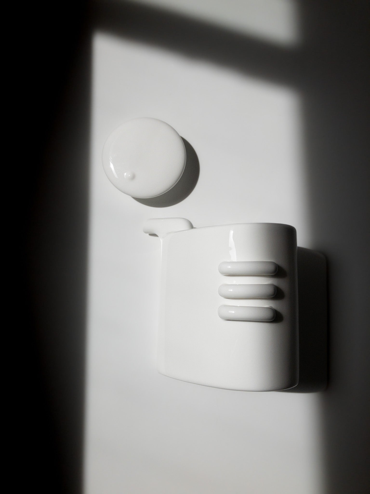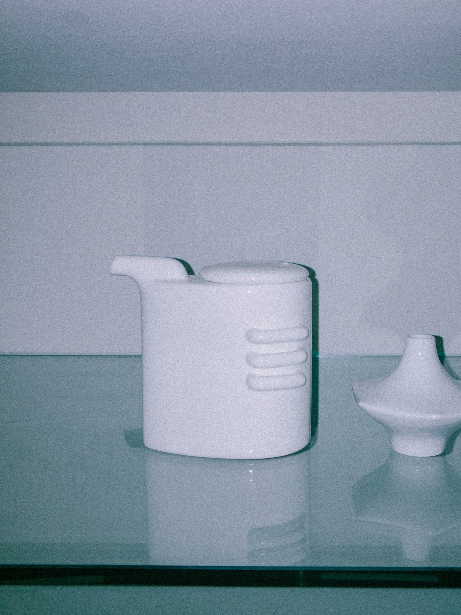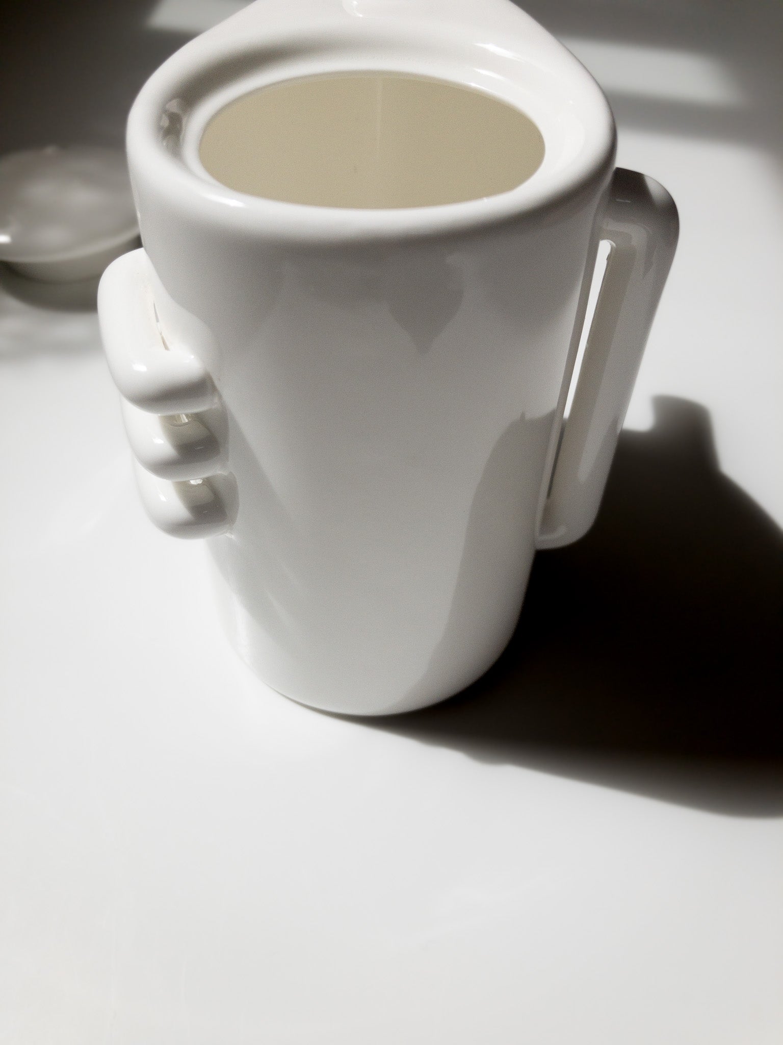 個性的な形状でモダンなデザインですが、高品質なボーンチャイナ(骨灰磁器)製というのもあり、純白の地肌が際立った清潔感のある仕上がり。