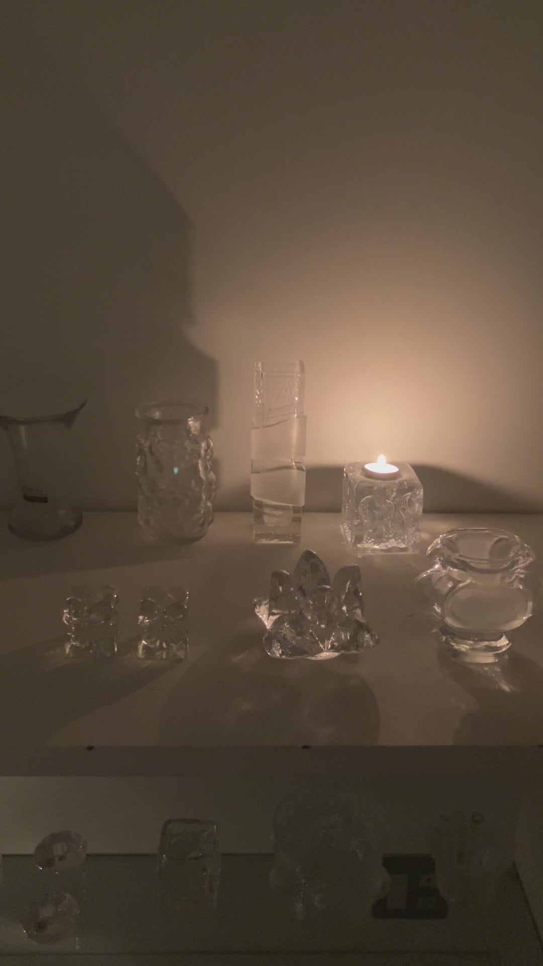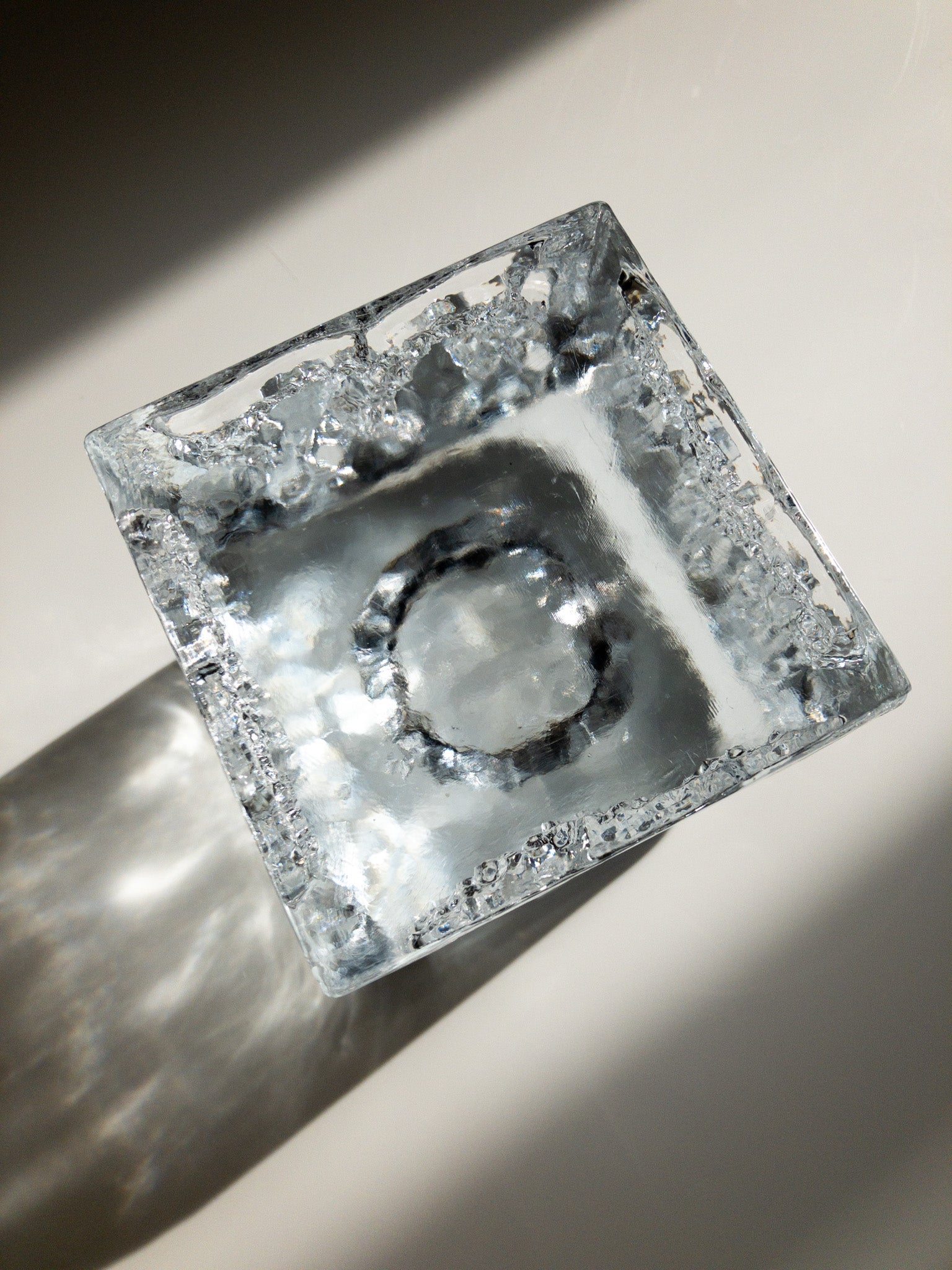 ドイツ Ingrid Glas(イングリッド・グラス)「Blockkristall Kerzenleuchter」シリーズのキャンドルホルダー。「Blockkristall」は「ブロッククリスタル」、「Kerzenleuchter」は「キャンドルホルダー」。なので「ブロック状クリスタルのキャンドルホルダー」という意味です。