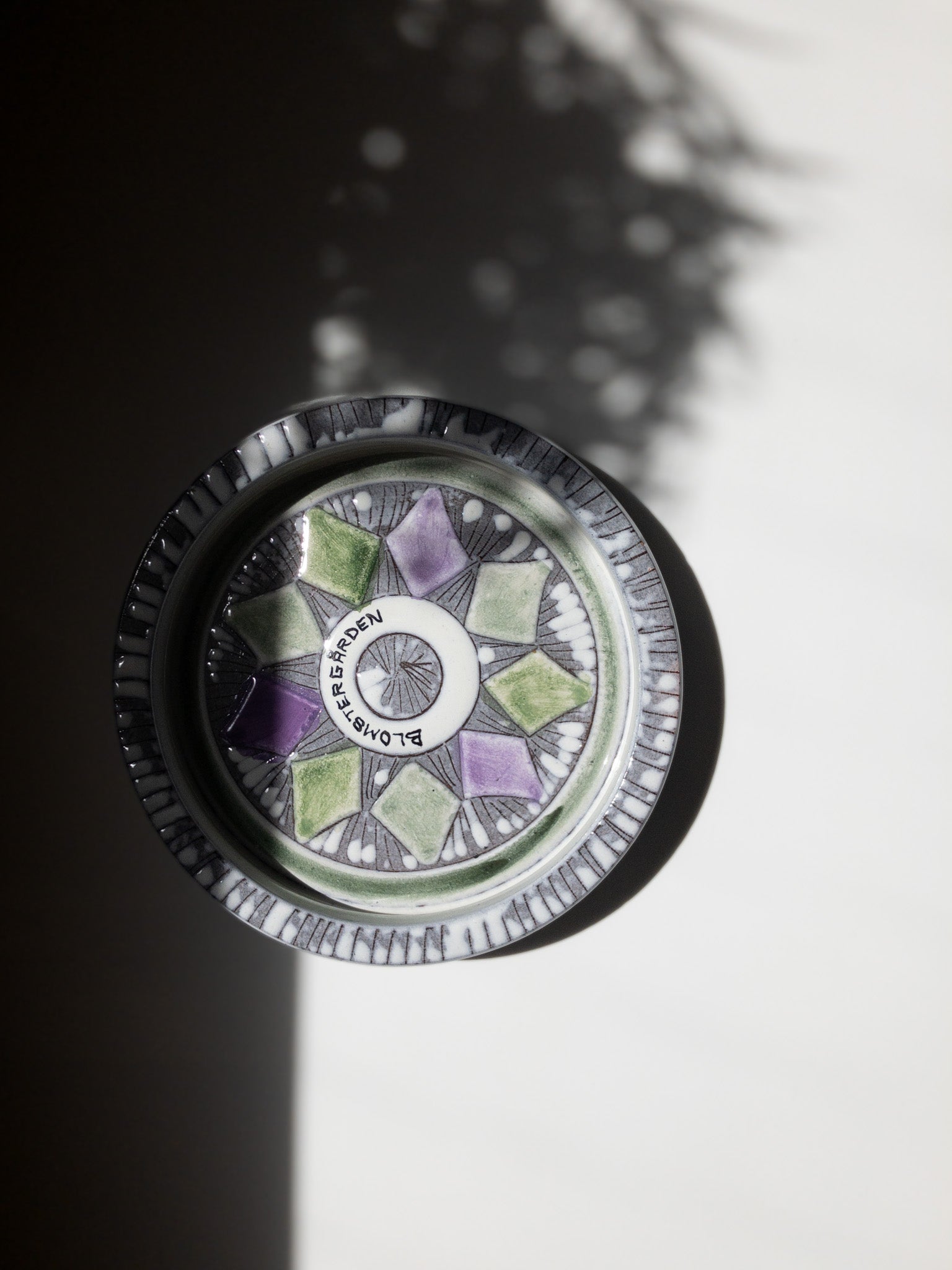 「Blomstergården」は直訳すると「花の庭」という意味だそうで、このダイヤと円はお花を表現しているるみたい。ラホルムには海も川も森もあるからか、ラホルムの陶芸には自然主義的なデザインが多く見られるようです。