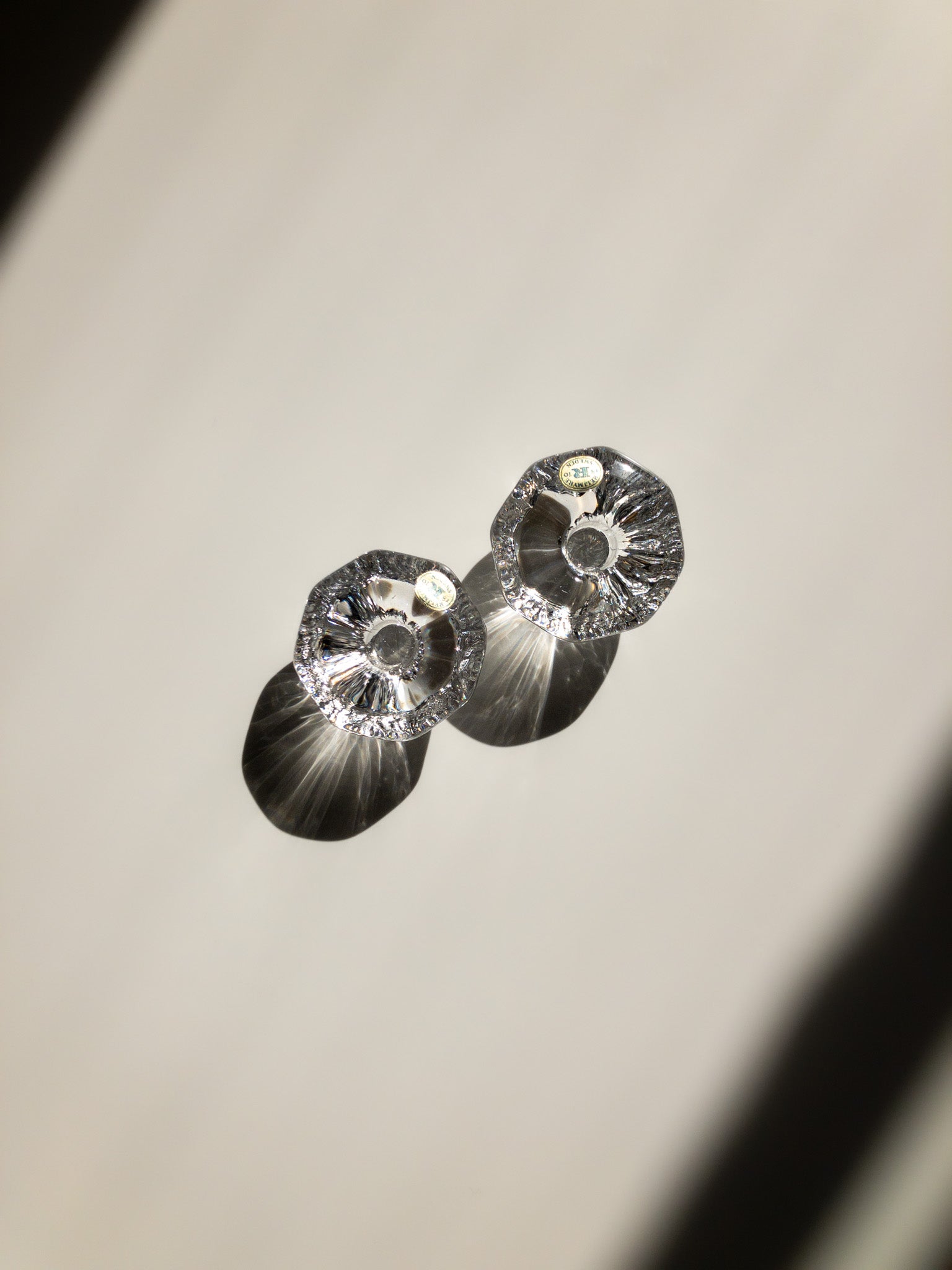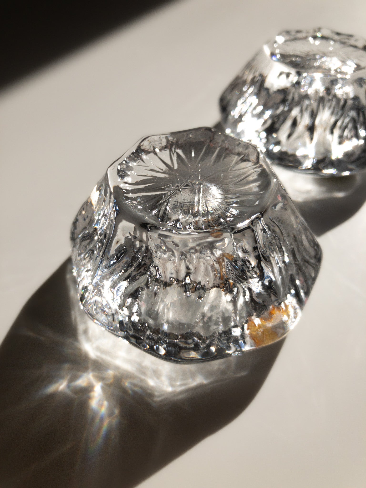 「アイスクリスタル」効果が施されているそうで、氷のような滑らかな質感。角が丸くなった八角形のような、ぷっくら厚みがあって可愛らしい形状。キャンドルを刺すのもいいですが、ペーパーウェイトとして使っても可愛いかなと思います。それぞれ、「REIJMYRE 1810 SWEDEN」と記されたシールが貼られています。