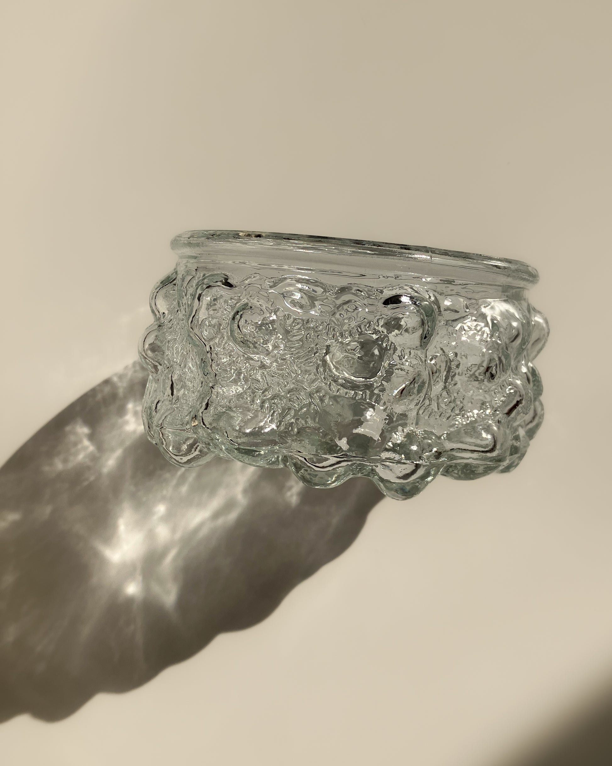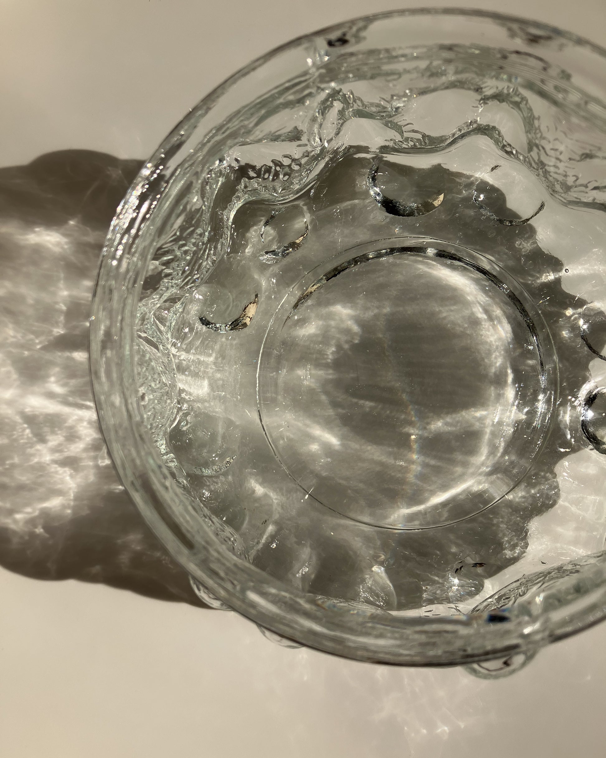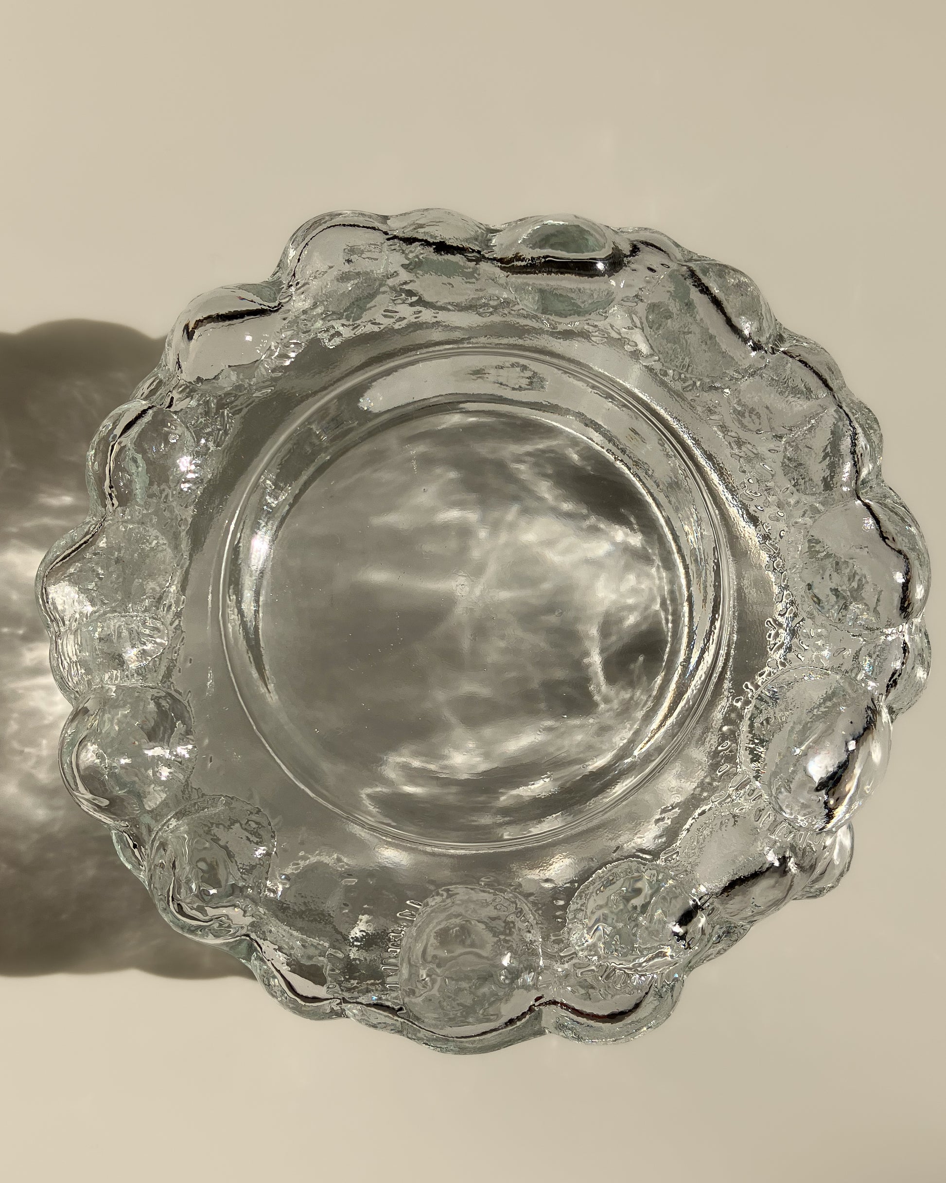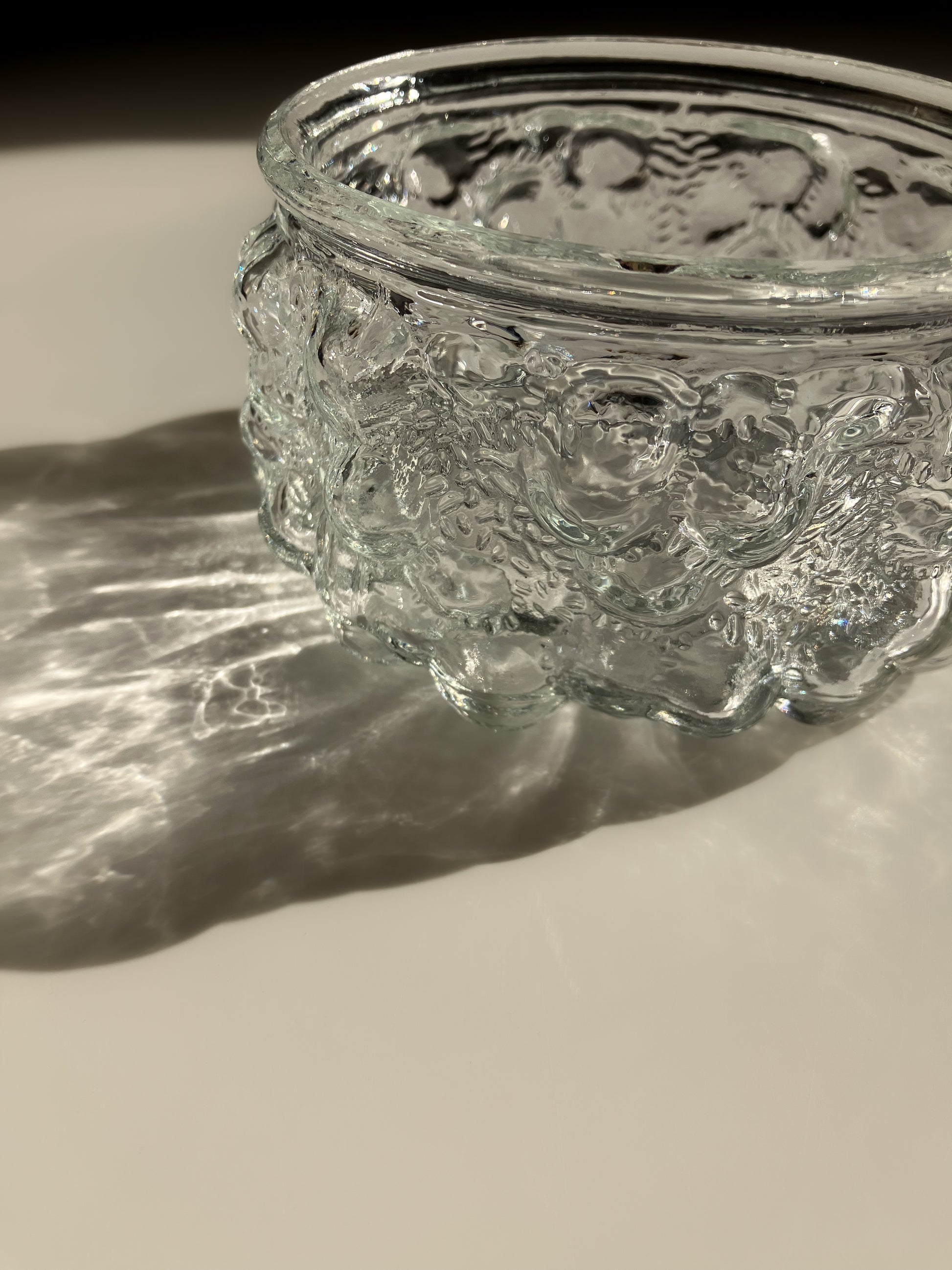 表面にポコポコと気泡が点在し、光を受けるとそのテクスチャが穏やかにきらめきます。このモデルには底面までバブルがあるタイプもあるのですが、こちらは底面にはバブルがないタイプです。