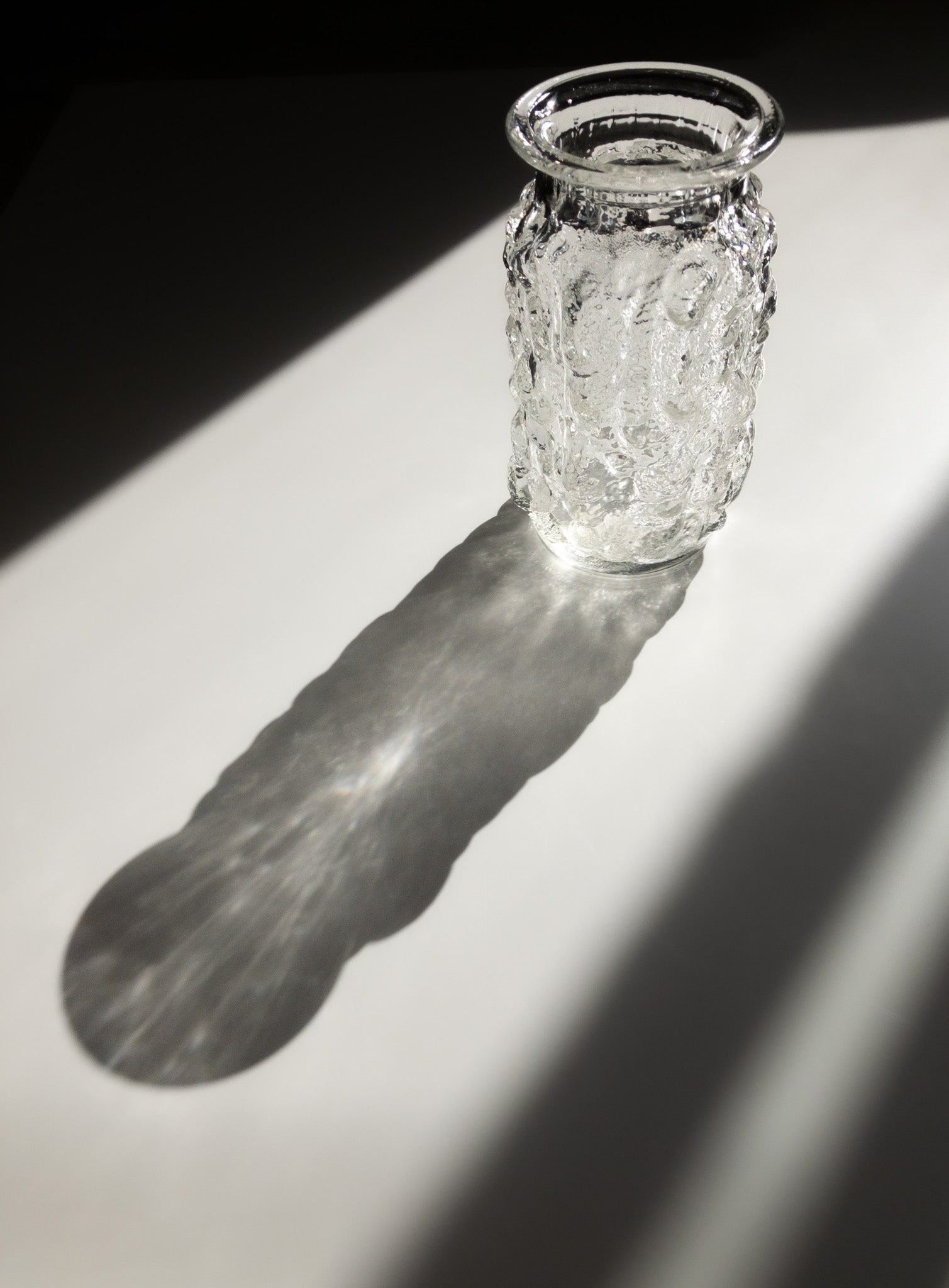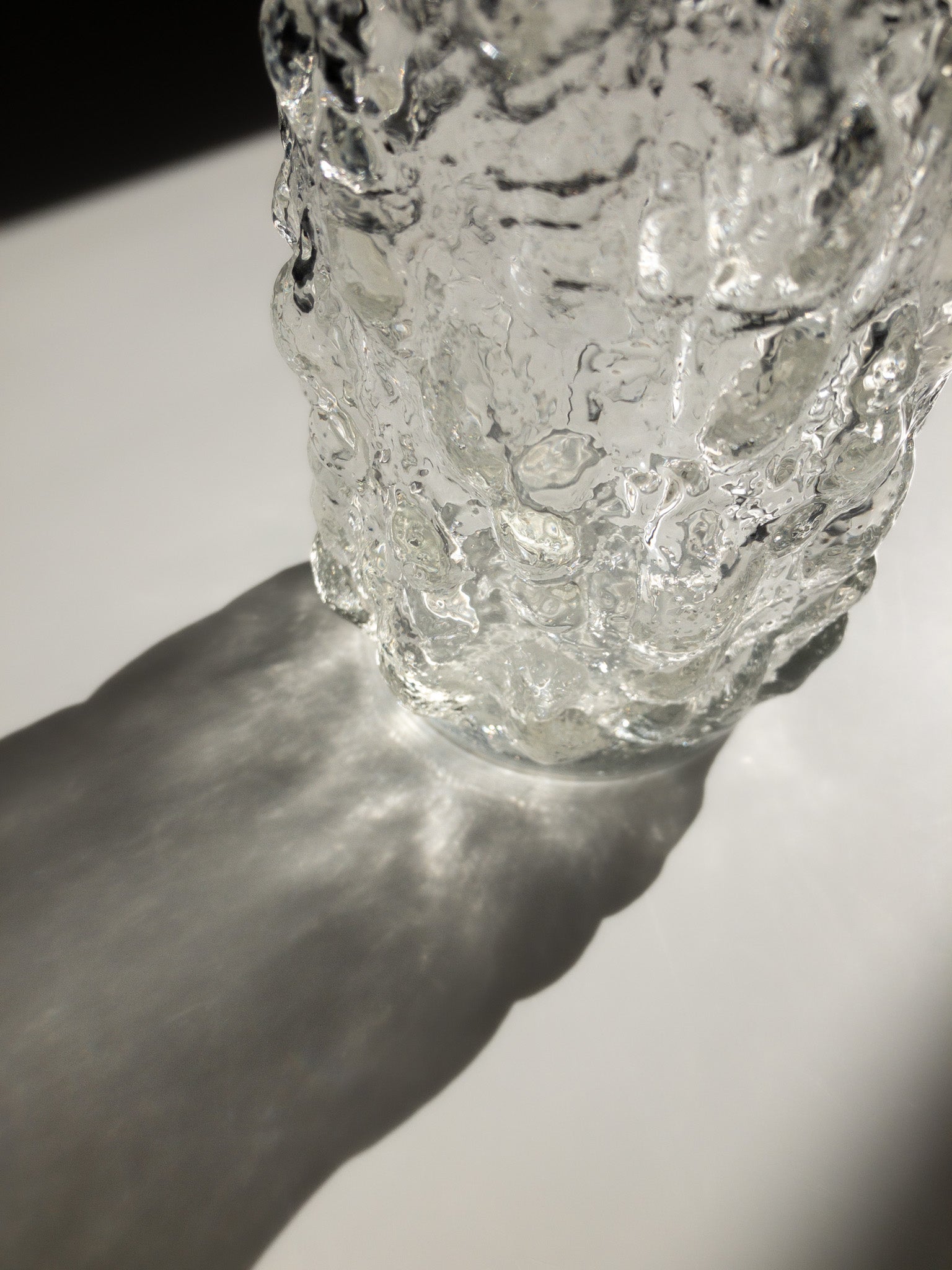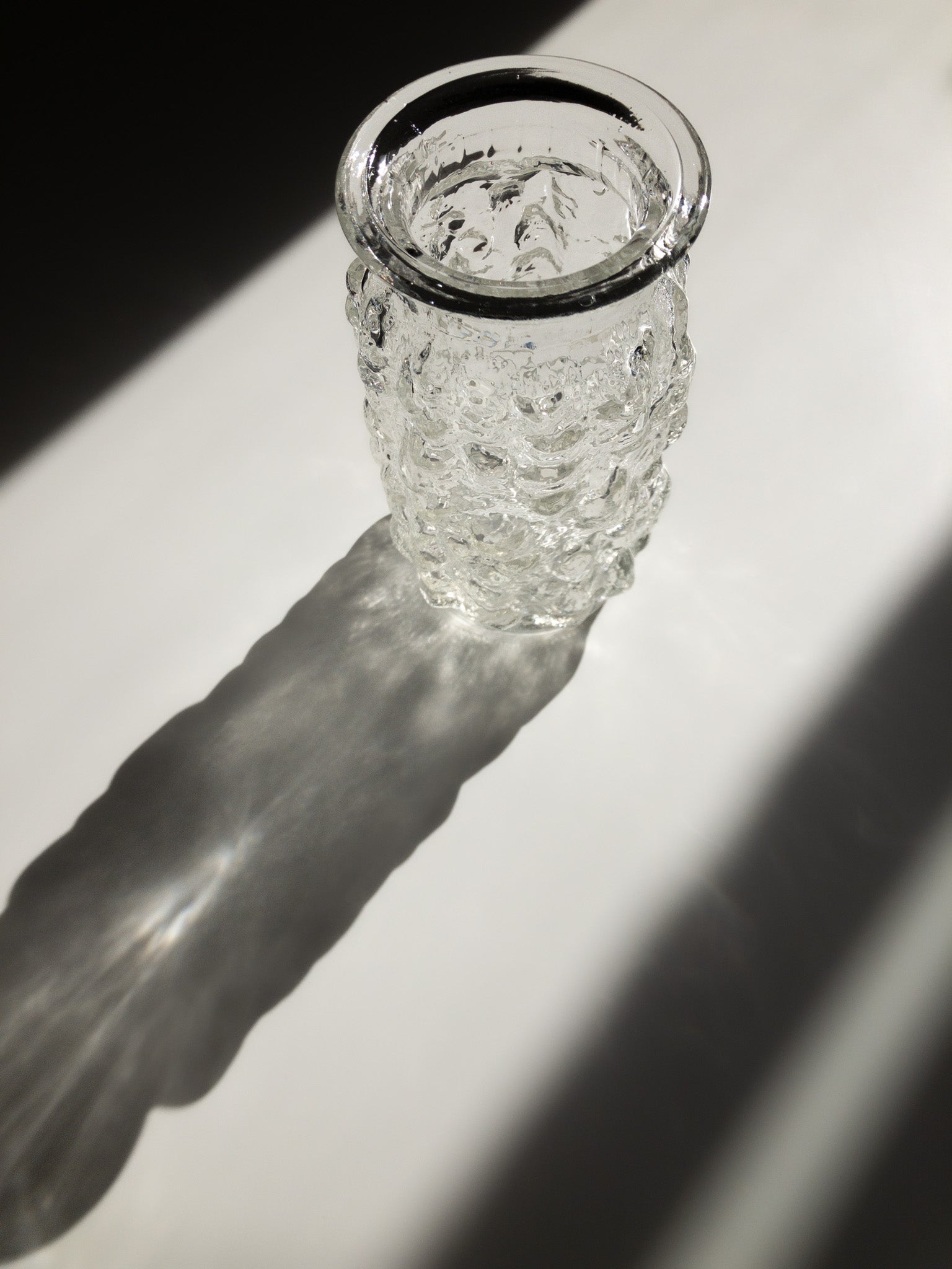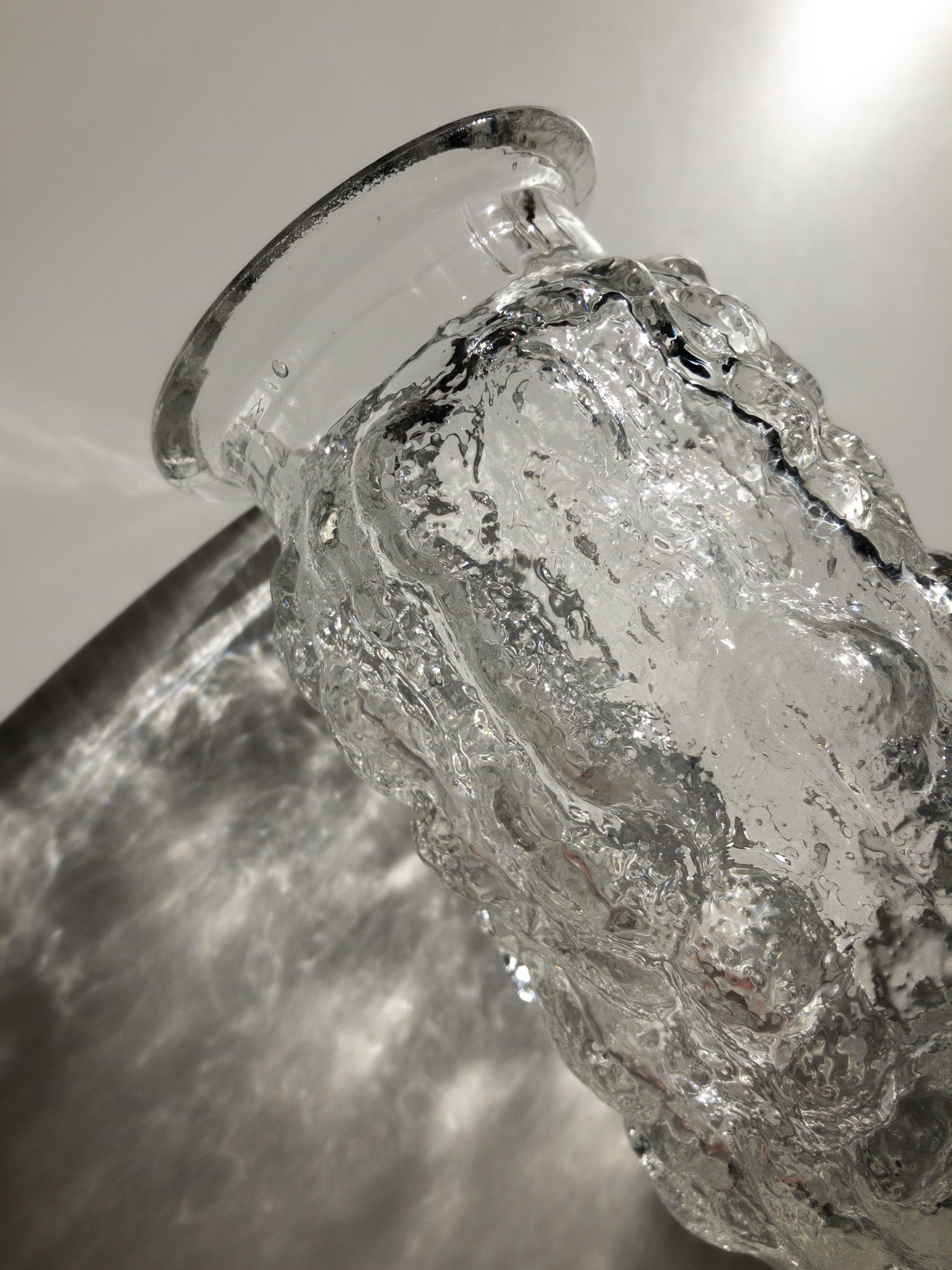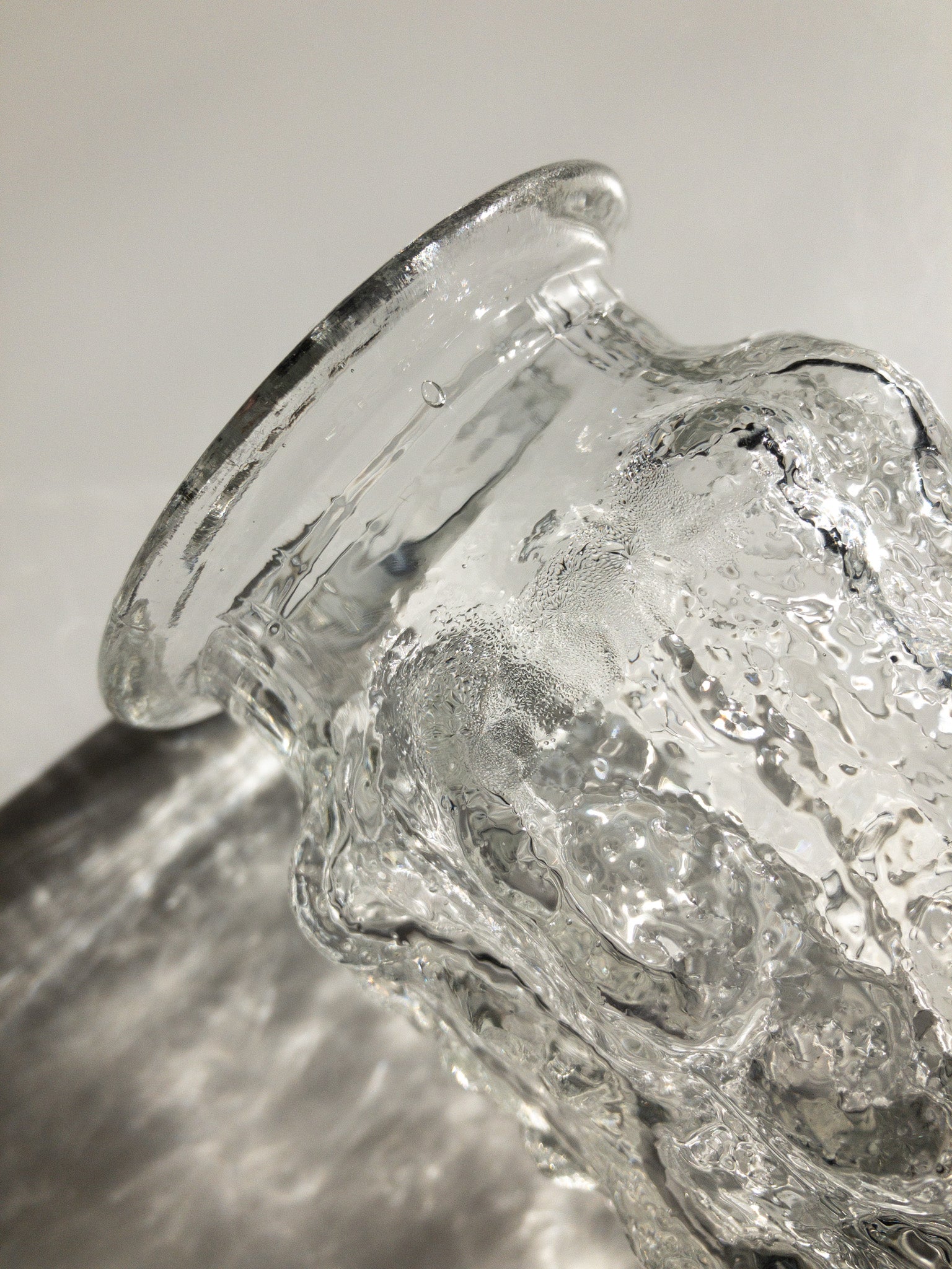チェコスロバキア Libochovice Glassworks(Sklo Union)の花瓶。1969年、Vladislav Urbanによってデザインされました。プレスガラス(型押しガラス)技法によって表現されたデコボコがおもしろくてかっこいい、個性的な存在感のある花瓶です。